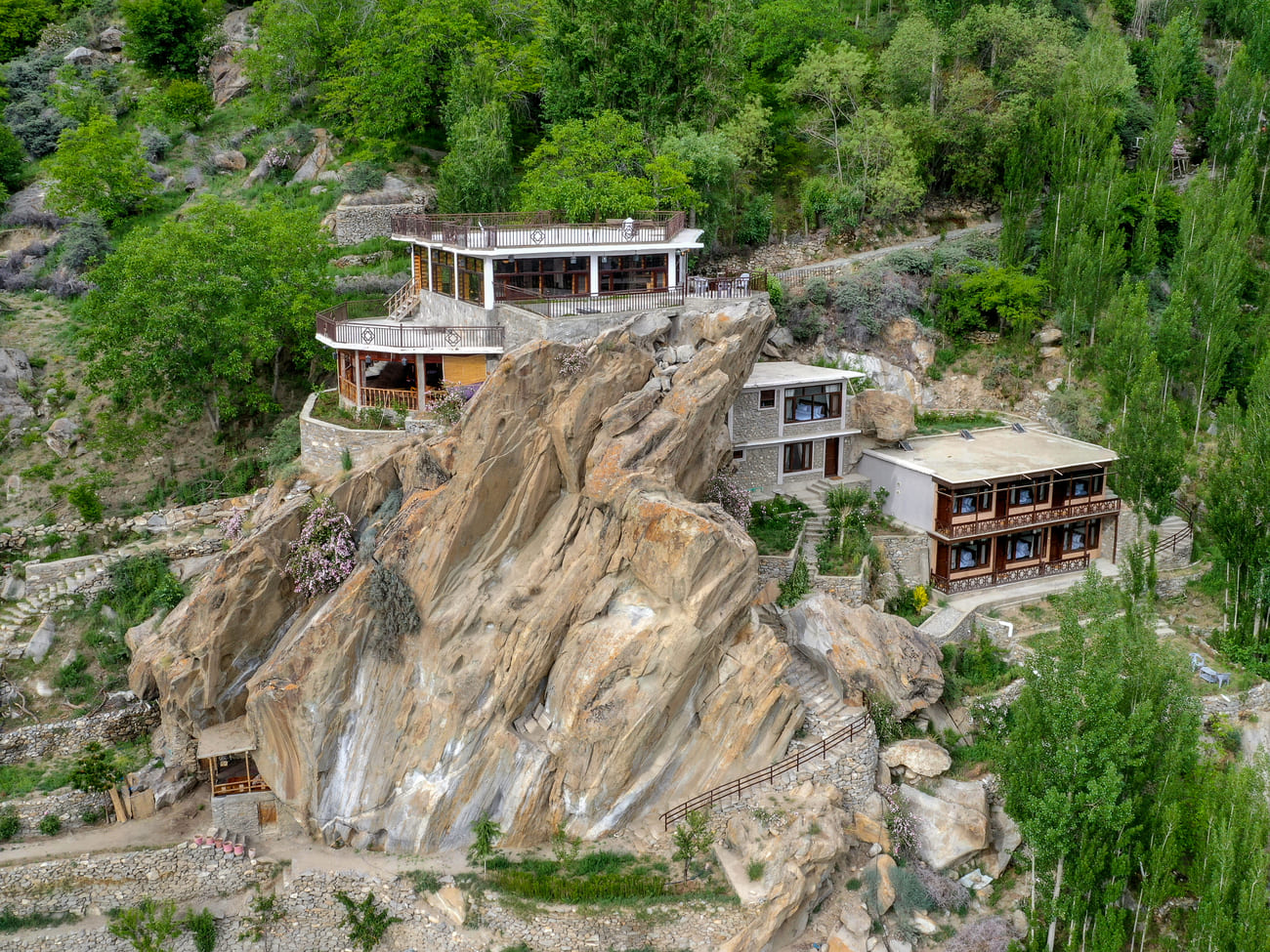 Roomy Vantage Resort in Duikar Hunza offers adventure, solitude, and breathtaking views. Accessible via a thrilling 300-step staircase, this hidden retreat immerses you in pristine nature and fresh mountain air. Some rooms feature natural mountain boulder walls, blending the indoors with the rugged beauty of the landscape. With panoramic views and a nature-inspired design, this resort offers a truly unforgettable escape into the wild.